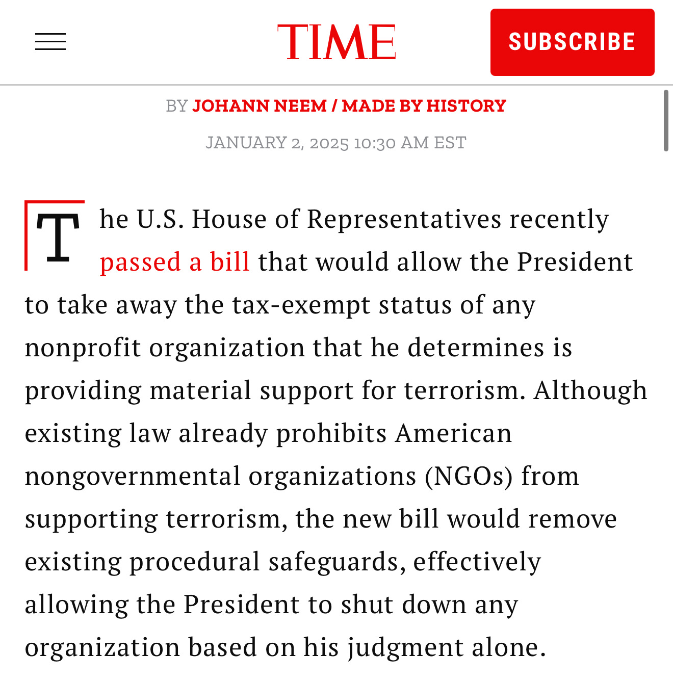 The crackdown of free speech by the Trump Administration continued. I spoke with some people in the non-profit space and they shared with me that there was a lot of rumbling over Trump’s statements in the Oval Office on Thursday and a bill passed by the House in Jan. 2025.