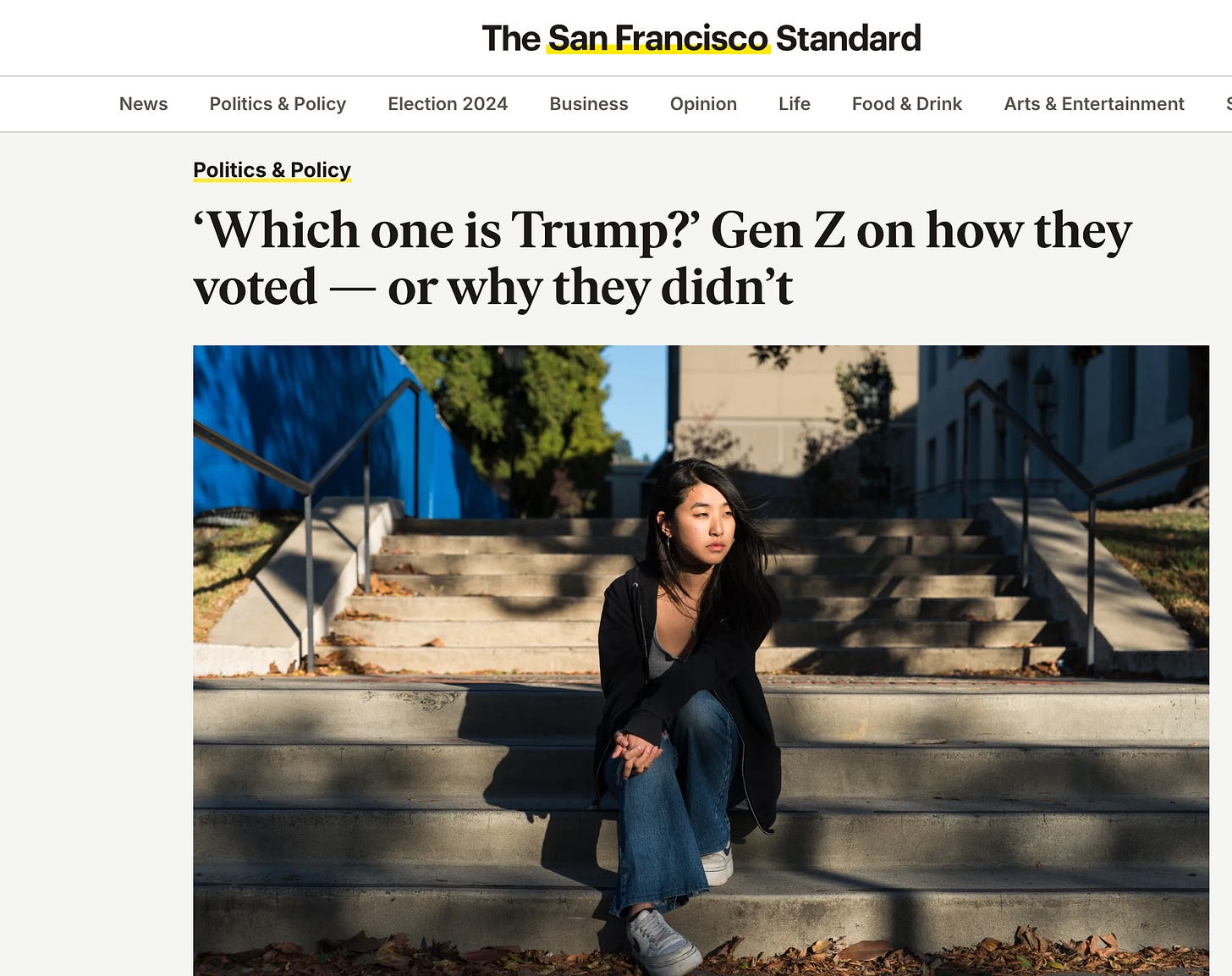 The San Fransisco Standard spoke to Gen Zers to find out if they voted or not and why. One 23-year-old local college student said he voted for Biden in 2020 because his parents pushed him to, but didn’t vote at all in 2024. A lot of people stayed home, millions more than 2020. Apathy was an often-cited reason for abstaining from voting. An undercurrent in many of the answers was a lack of understanding of how government works. Especially the impacts of state and local government, which is reason enough not to skip any election.